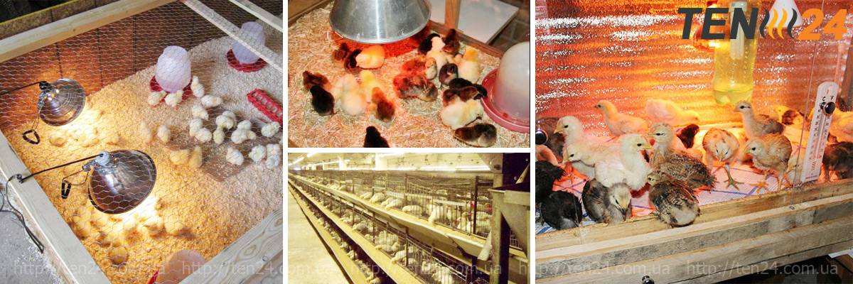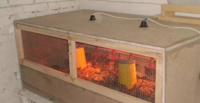 Il existe différentes options pour les éleveuses qui vous permettent de minimiser le pourcentage de déchets et de fournir aux poulets une croissance et un développement complets dans les premiers jours de leur vie. L'option la plus économique est une partie clôturée de la buanderie et une lampe installée pour le chauffage.