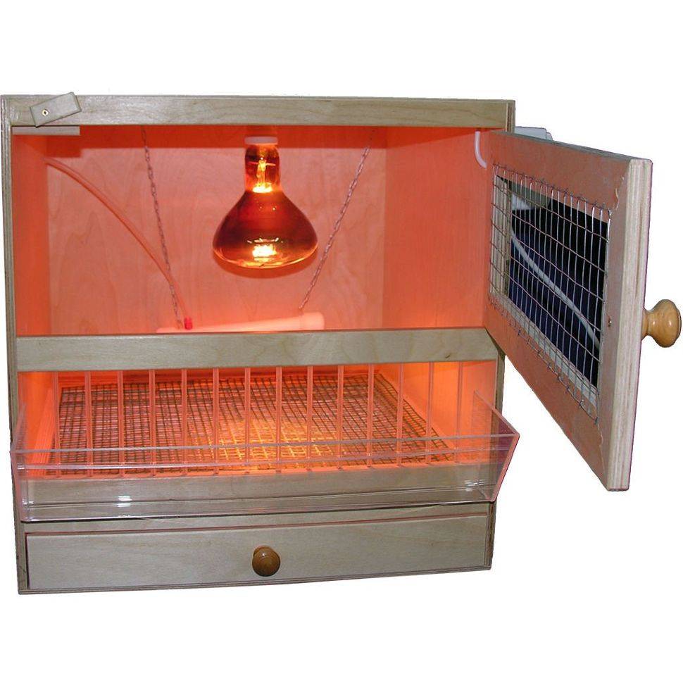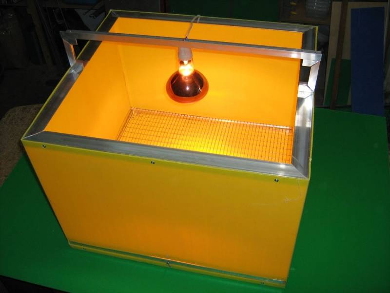 - La couveuse doit être équipée de plusieurs lampes infrarouges, et un thermostat est également souhaitable, qui réagit aux conditions changeantes à l'extérieur et ajuste la température à l'intérieur de la couveuse.
