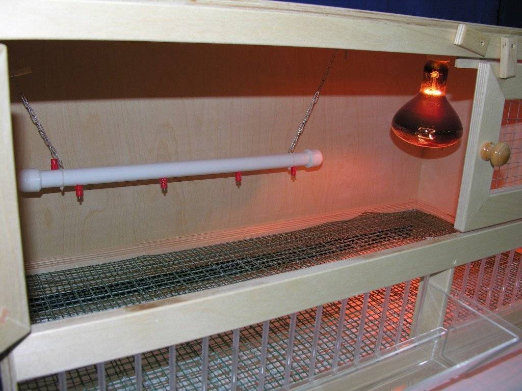 - Un bon système de chauffage, un éclairage, des mangeoires et des abreuvoirs de qualité. La marge de sécurité et la ventilation sont assurées par des grilles à mailles fines sur les côtés et sur le fond de la cage (la taille des mailles est d'environ 10 mm).