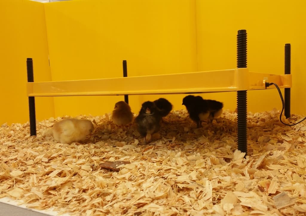 Un tel ajout au système de chauffage principal sera utile. C'est une plaque chauffante de faible puissance. Il repose sur 4 petits piliers. Un tel appareil n'augmente presque pas la température de l'espace environnant, mais si vous vous appuyez contre sa surface chaude, les poussins peuvent se réchauffer de la même manière que dans des conditions naturelles - avec une poule pondeuse.