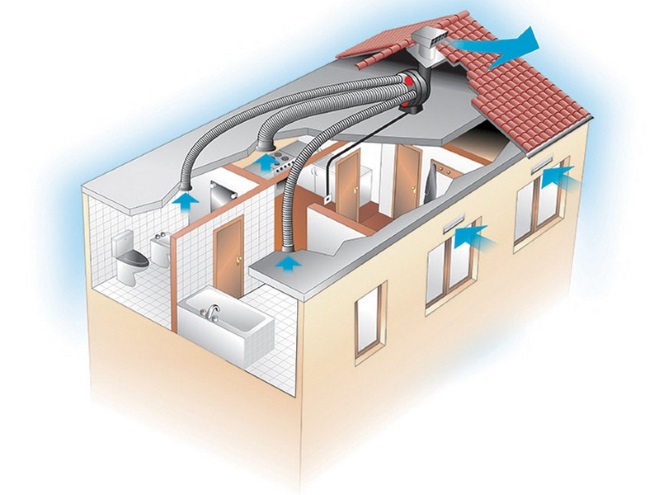 L'inconvénient du système est qu'en hiver, une telle ventilation n'est pas efficace pour chauffer la maison, car une grande différence de température est créée.