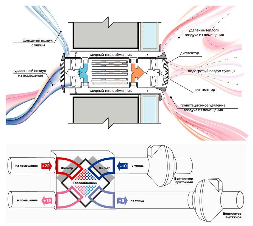 Ventilation à faire soi-même avec chauffage: les nuances du chauffage de l'air + instructions de montage du systèmeSchéma standard de ventilation d'alimentation et d'extraction avec chauffage