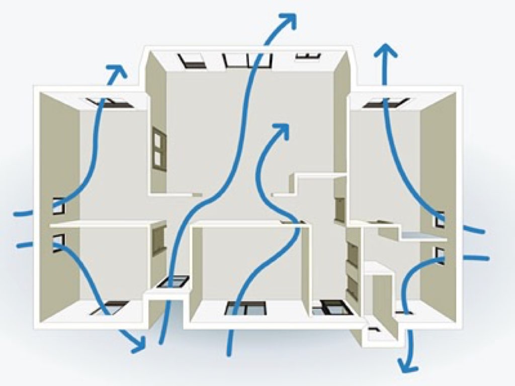 1. Le flux d'air doit aller des pièces propres aux pièces sales : de la chambre, de la chambre d'enfant, du couloir à la cuisine et à la salle de bain (comment installer une ventilation dans la cuisine et la salle de bain ?).