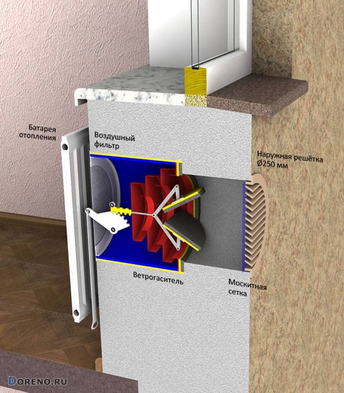 L'avantage le plus important d'un système mécanique est le contrôle de l'alimentation en air et du débit. De plus, pour le fonctionnement d'un système mécanique dans une maison privée, d'énormes conduits de ventilation ne sont pas nécessaires - un petit trou dans le mur ou la porte suffit.