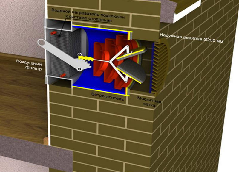 La quantité d'air fournie dépend de la vitesse de son mouvement, de la différence de température et du niveau d'humidité. Le plus souvent, l'appareil est monté au mur, c'est un petit boîtier.