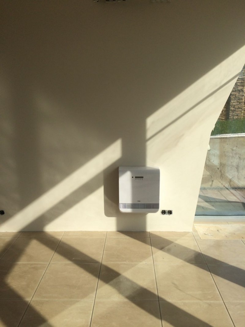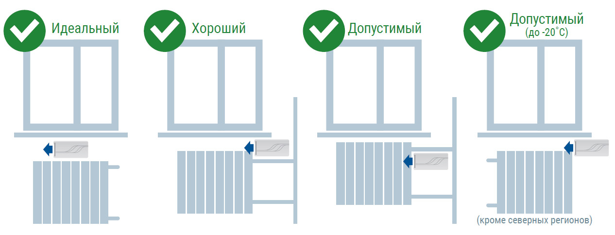 - entre le rebord de la fenêtre et les batteries - l'air soufflé est chauffé par l'appareil de chauffage et distribué dans toute la maison;