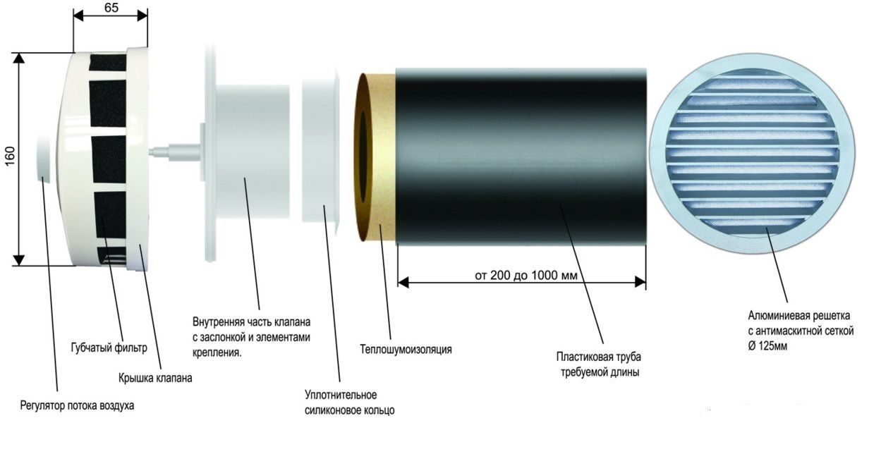 Contrairement à la vanne d'alimentation, la vanne d'échappement dans le mur prévoit la présence de canaux de ventilation dans la pièce. Typiquement, de telles gaines de ventilation traversent les parois des locaux techniques (cuisine, salle de bain, salle d'eau). Si vous installez une soupape d'évacuation dans ces pièces, elle suffira à faire circuler l'air de tout l'appartement ou la maison. Il suffit de connecter le dispositif de vanne au conduit de ventilation et de fixer la grille.