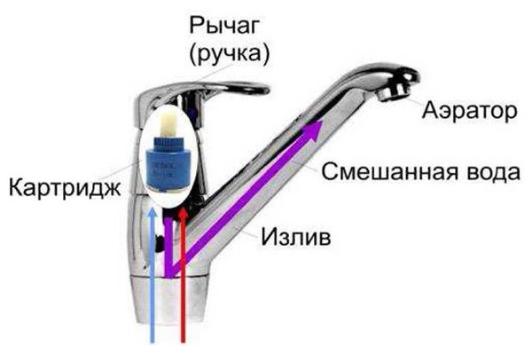 Cependant, les mélangeurs à valve ont également suffisamment d'admirateurs. Ils sont attirés par le fait que les boîtes de verrouillage de ces modèles peuvent être réparées indépendamment. Dans les robinets à une main, toutes les réparations consistent à remplacer les joints et la cartouche - l'intérieur du robinet dans lequel l'eau est mélangée.