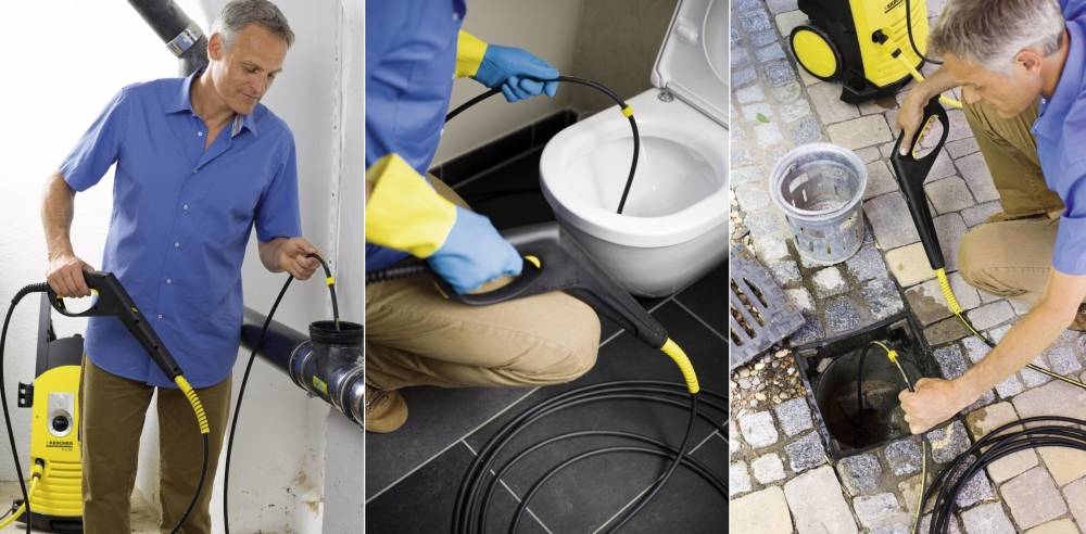 Les machines listées ci-dessus sont conçues pour un usage professionnel fréquent, elles disposent donc d'un moteur puissant, le plus souvent à essence, d'une masse importante et d'un coût élevé. Si vous souhaitez vous débarrasser du blocage par vous-même, vous pouvez le faire assez efficacement à l'aide de machines électriques domestiques similaires. Les propriétaires de maisons privées ont souvent leurs propres nettoyeurs électriques à haute pression, qui peuvent nettoyer les égouts tout aussi efficacement.