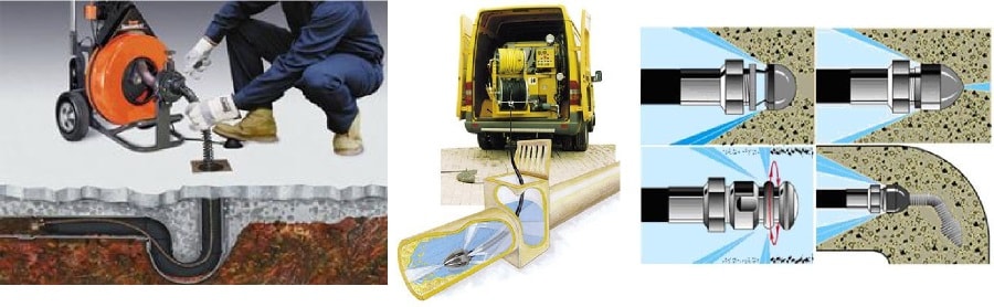 Le nettoyage des conduites d'égout avec un câble ne consiste pas seulement à percer le blocage lui-même, afin d'éliminer complètement ses conséquences, il est nécessaire de laver l'endroit avec un jet d'eau intense.