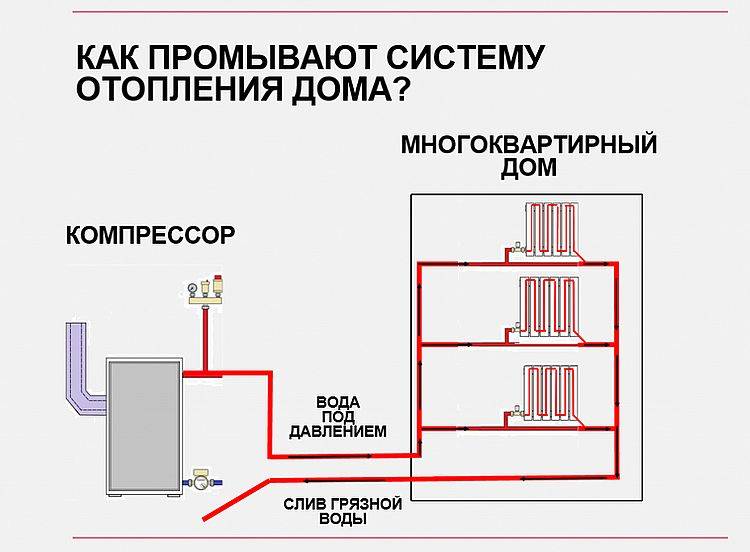 Cette méthode consiste à traiter les surfaces internes des batteries et des tuyaux avec un mélange air-eau à haute pression. Le rinçage du système de chauffage de cette manière est très efficace, mais son utilisation nécessite un équipement spécial.