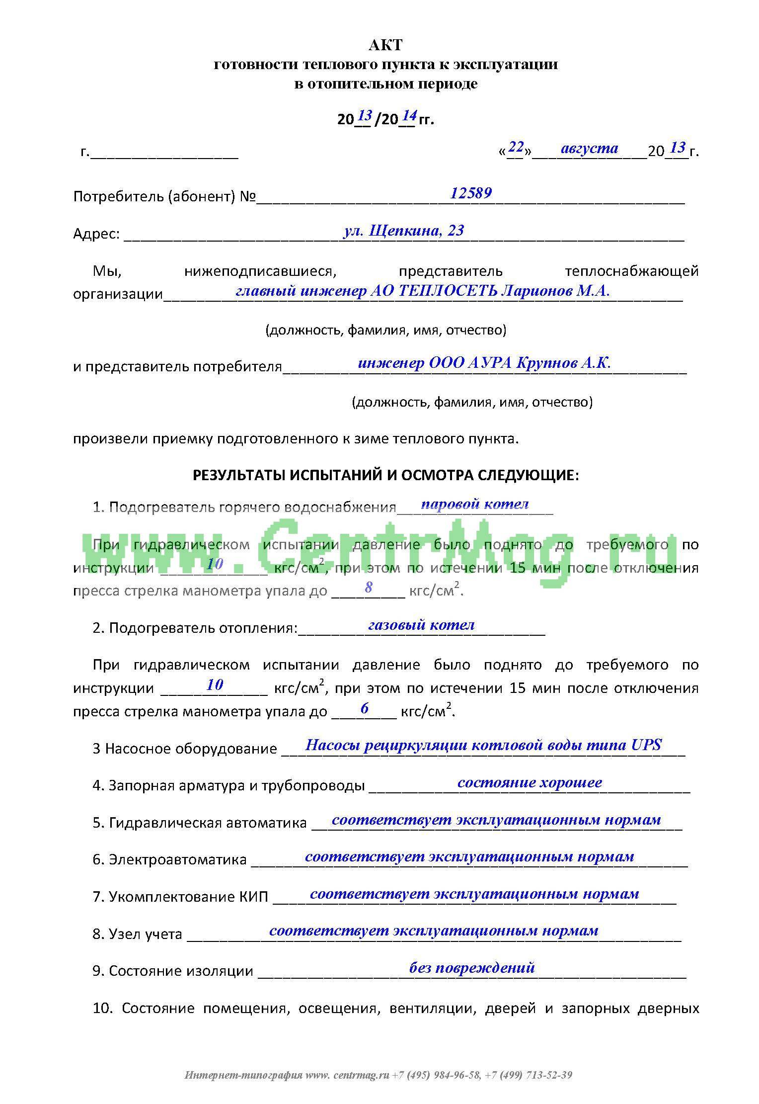 | Évaluation par le gestionnaire responsable (propriétaire du bâtiment) de l'état de préparation de l'état technique et de l'état de fonctionnement de l'équipement de lutte contre l'incendie des bâtiments résidentiels et publics pour un nouveau chauffage | ||