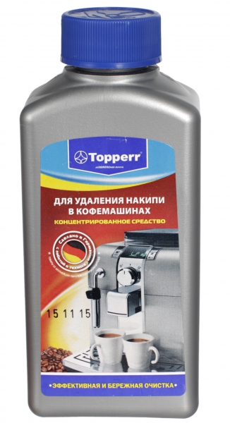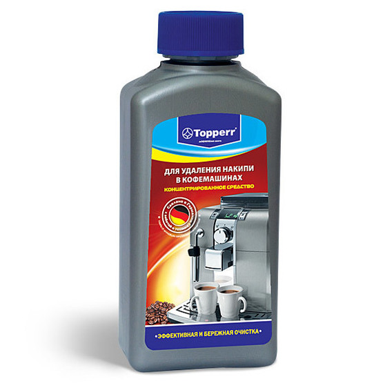 Un autre nettoyant de fabrication allemande. Le plus économique de tous présentés, néanmoins, il est tout aussi efficace pour détartrer les machines à café, pour lesquelles il rentre dans notre classement des meilleurs. Le volume est suffisant pour 2-3 applications. Le prix moyen est de 200 roubles.