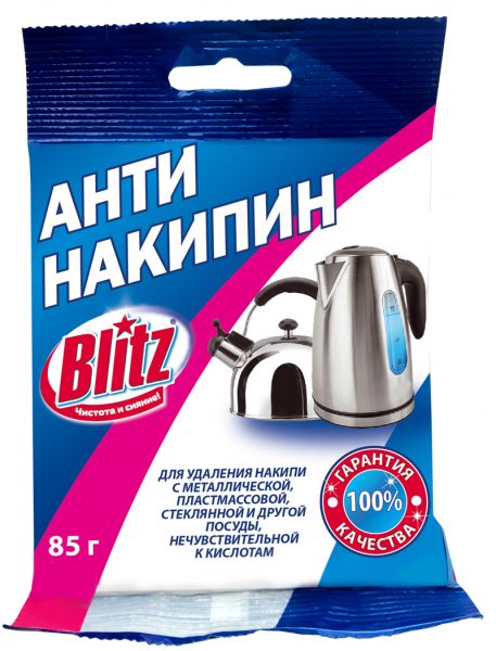 - Acide citron. Pour 500 ml d'eau, vous avez besoin de 1 à 2 cuillères à soupe. cuillères de poudre. Remplissez la bouilloire d'eau, diluez le détartrant mentionné et portez le contenu à ébullition. Après cela, il reste à attendre 30 minutes, à verser le liquide et à enlever la plaque restante avec une éponge.