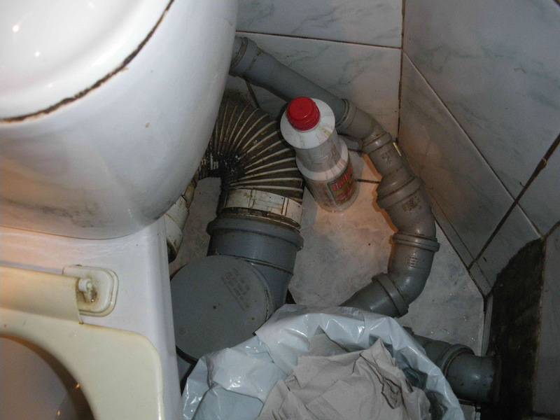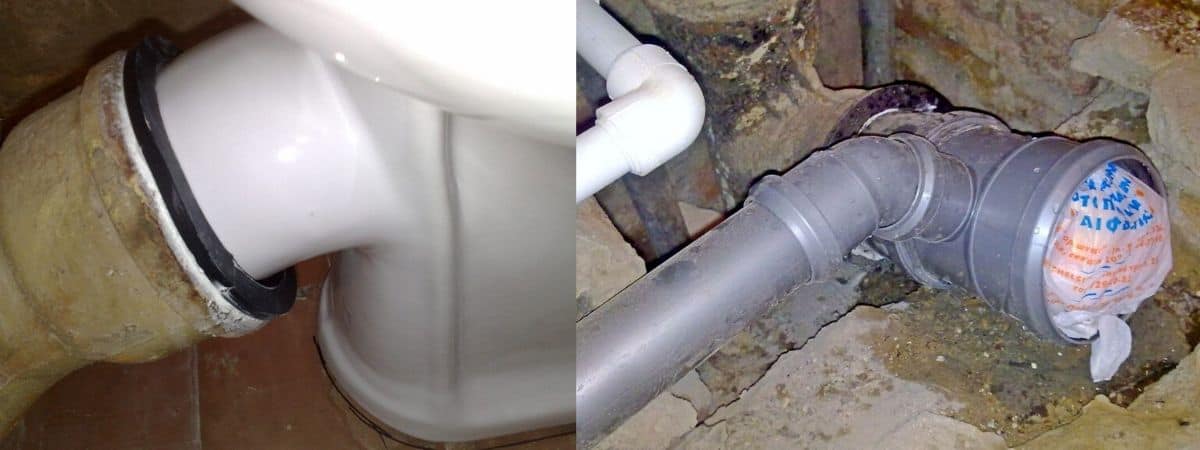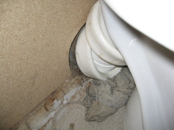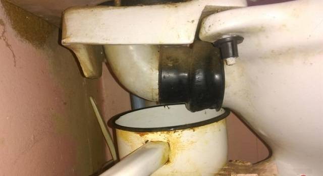 L'étanchéité du joint où les toilettes sont reliées au tuyau d'égout est cassée - le mastic dans la douille en fonte s'est exfolié. Cela se produit souvent lorsque la plomberie est installée sur du mortier de ciment.