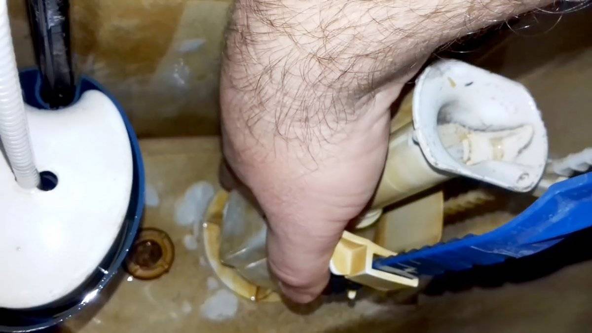 Pour ce faire, retirez le couvercle de l'appareil et soulevez le flotteur à la main. Si seulement un centimètre suffit pour arrêter la fuite, cela signifie que le bras du flotteur n'est pas plié correctement, il n'est donc tout simplement pas en mesure d'arrêter le débit et l'eau s'écoule librement par le trou de vidange.