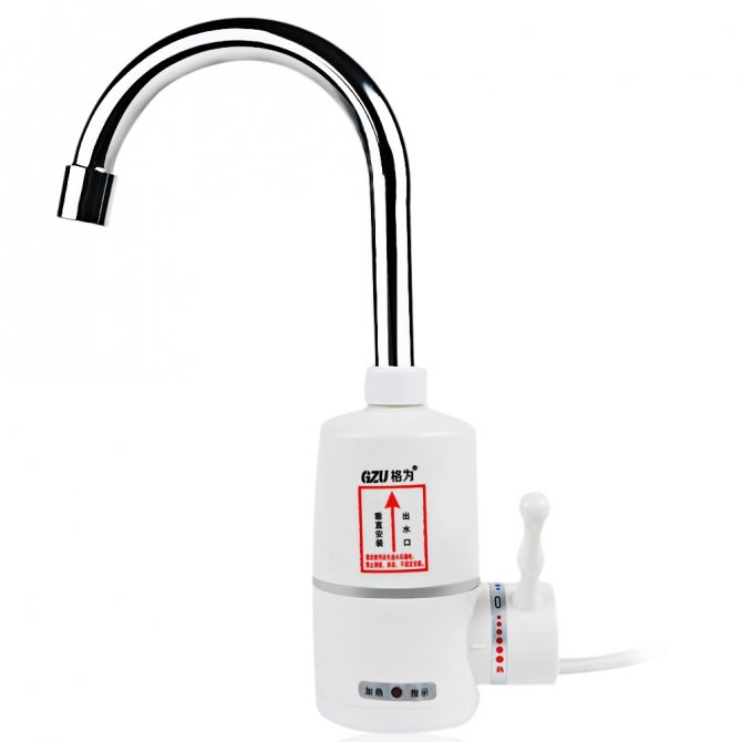 Séparément, il convient de parler de robinets avec chauffe-eau électrique. Ils sont aussi appelés chauffe-eau du robinet. Ils sont apparus il n'y a pas si longtemps, mais gagnent rapidement en popularité, car ils sont faciles à utiliser, il suffit de se connecter.
