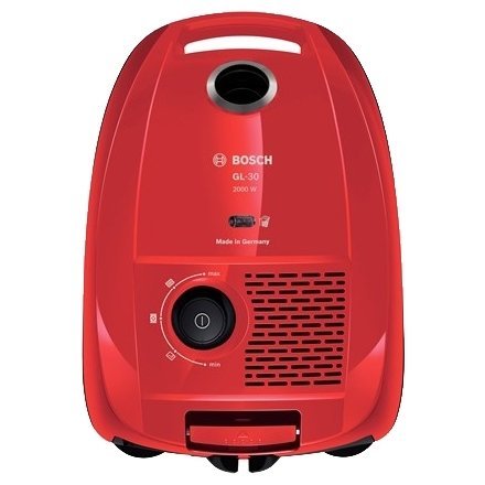 Le boîtier du modèle GL 30 BGL32003 est en plastique. Sa forme est cylindrique. Le fabricant a utilisé de belles couleurs vives (rouge, bleu) dans la ligne. Le bas est noir. Les roues sont en plastique, internes, il y en a 4. Près du trou d'aspiration se trouve une poignée, grâce à laquelle il est facile de transporter l'appareil. Un bouton est responsable du réglage de la puissance et de la marche / arrêt. Il est situé en haut du boîtier. Lorsque vous appuyez dessus, l'appareil s'allume, le niveau de puissance d'aspiration est réglé en douceur.L'aspirateur Bosch GL 30 BGL32003 peut fonctionner selon cinq modes, qui vont du minimum au maximum. Pour la commodité de la régulation de puissance, le constructeur a affiché tous les niveaux à côté du bouton. De l'autre côté se trouve une grille de ventilation. Le coût d'un tel modèle est d'environ 9000 roubles.