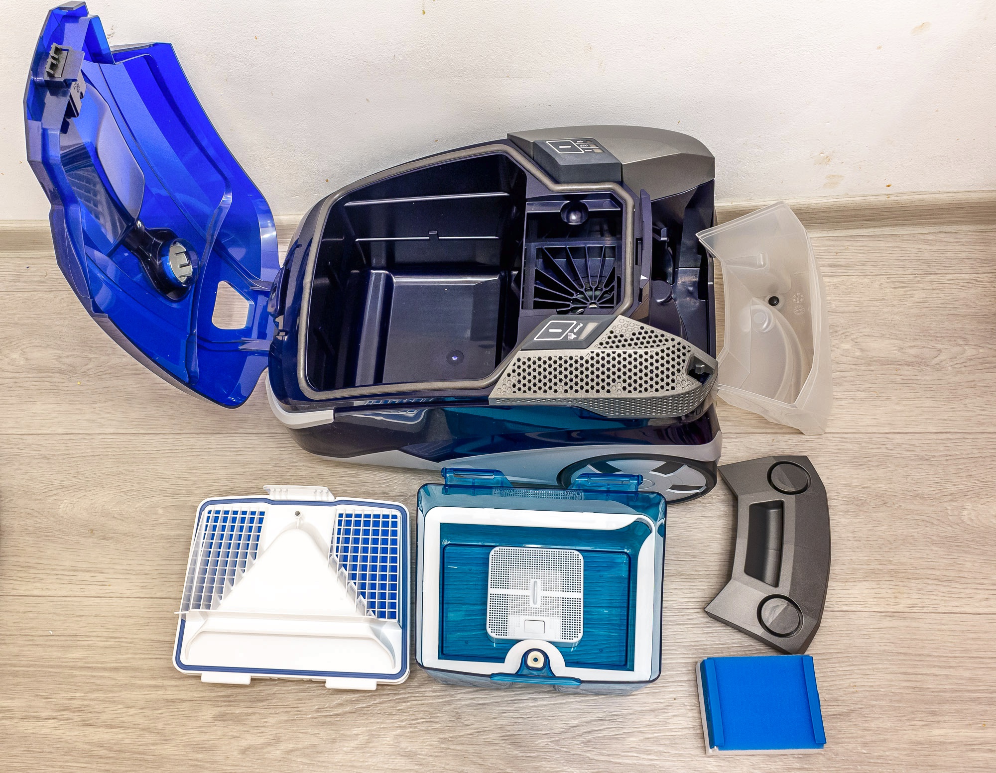 De l'architecture réussie des filtres, l'attention de l'utilisateur se déplace involontairement vers la conception des roues à rouleaux, grâce auxquelles l'appareil est déplacé. Détail apparemment insignifiant