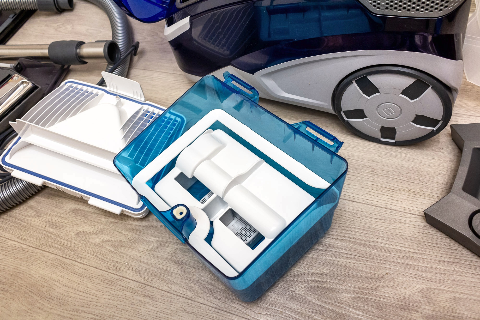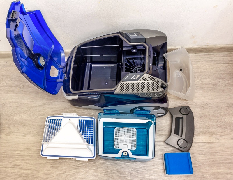 Pour ce faire, versez de l'eau dans le réservoir, ajoutez une composition détergente à l'eau. Les filtres fins (HEPA) sont changés en moyenne une fois tous les 12 mois.