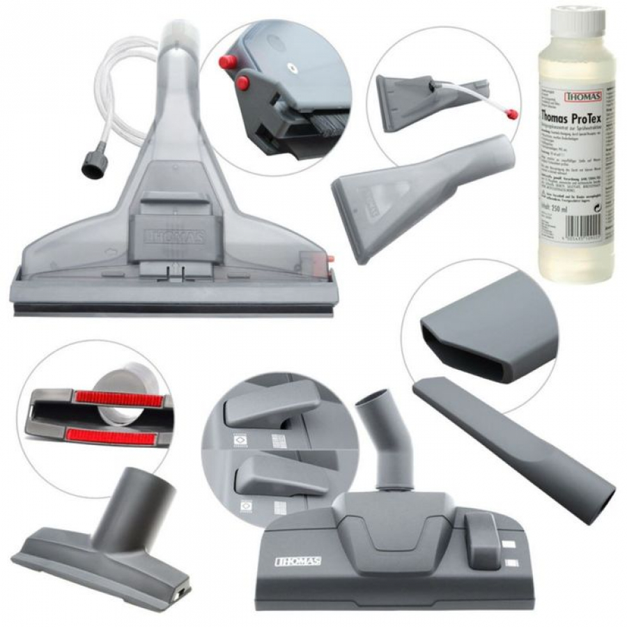Le forfait comprend généralement 3 à 6 buses à des fins différentes, des filtres de rechange et une bouteille de détergent. Si des pièces de rechange échouent, ne vous inquiétez pas - la société Thomas fournit rapidement des pièces de rechange et des consommables.