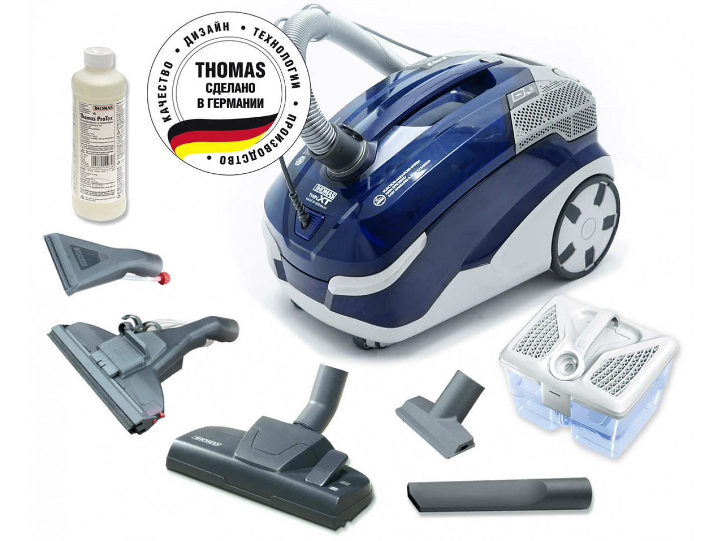 Thomas, d'Allemagne, est considéré comme un leader dans la production et la vente d'une variété d'équipements permettant un nettoyage de haute qualité des locaux industriels et résidentiels. Aspirateurs de lavage pour la maison avec une Aqua-Box unique - un filtre à eau de nouvelle génération, développé dans les laboratoires de l'entreprise, purifie l'air de la poussière avec une garantie de 99,99%, après le nettoyage, il vous suffit de verser l'eau sale dans la cuvette des toilettes et rincez le filtre aqua.