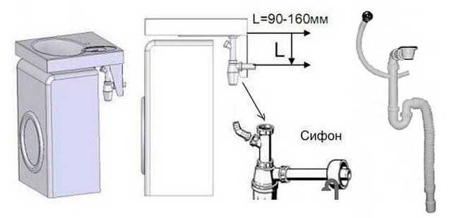Évier au-dessus de la machine à laver: caractéristiques de conception + nuances d'installationUn drain vertical est plus pratique en termes de vitesse d'évacuation de l'eau, mais l'emplacement du siphon directement au-dessus du corps de la machine est hautement indésirable et même dangereux. Après tout, toute fuite peut entraîner une panne du programmateur