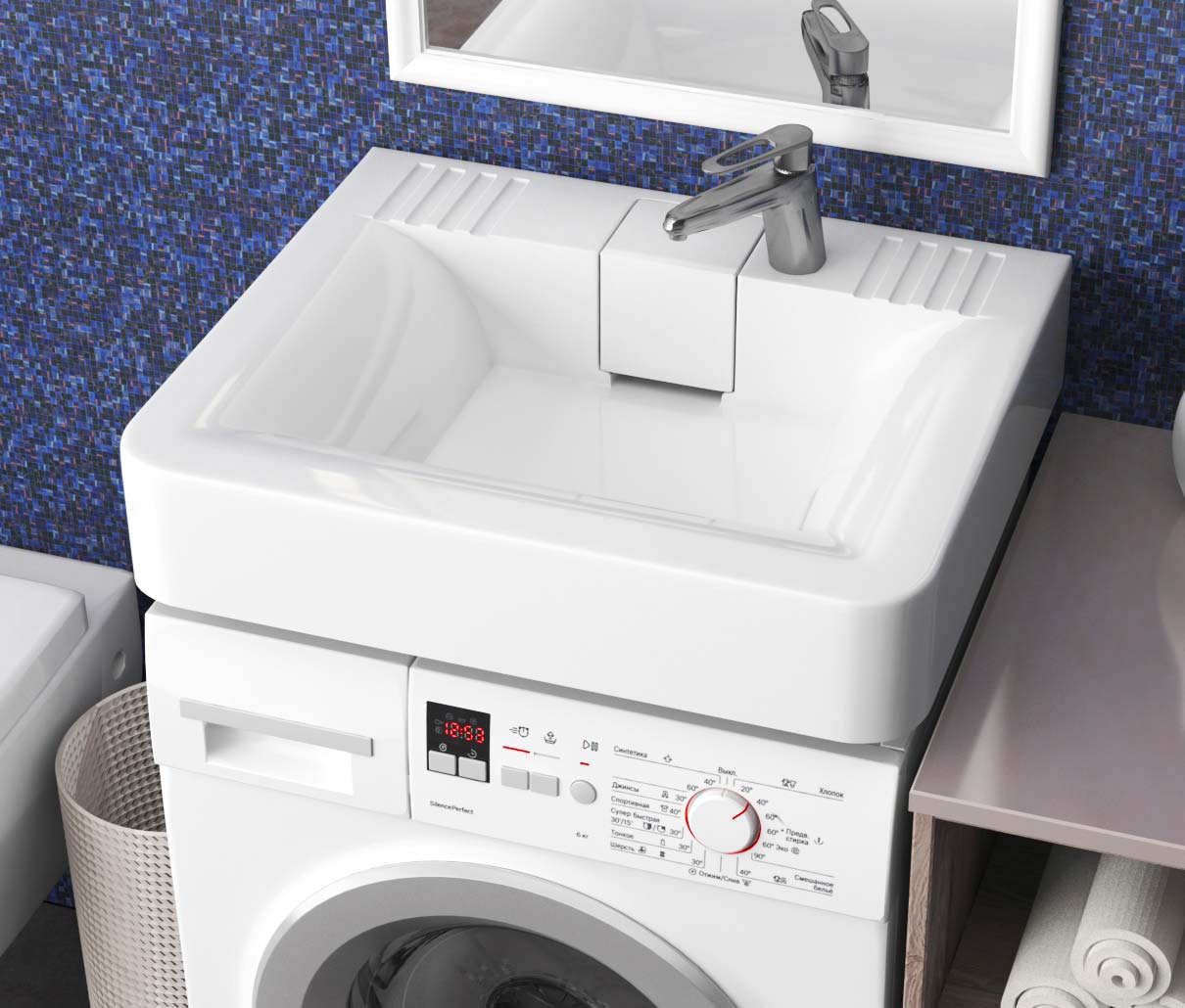Évier au-dessus de la machine à laver: caractéristiques de conception + nuances d'installationÉvier au-dessus de la machine à laver: caractéristiques de conception + nuances d'installation