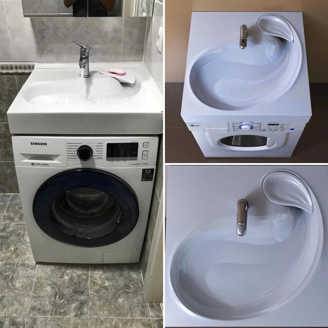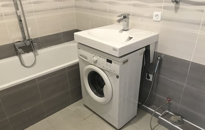 Évier au-dessus de la machine à laver: caractéristiques de conception + nuances d'installationL'évier est placé avec succès sur la machine à laver, seul un modèle spécial est sélectionné à cet effet. La voiture doit également être sélectionnée, la première qui tombe n'est pas la bonne. Il y a certaines subtilités d'une telle combinaison.