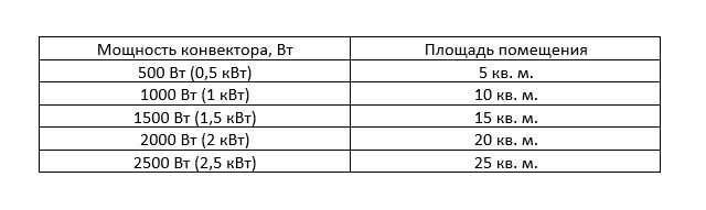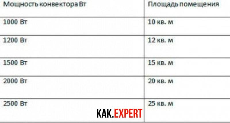 Pour calculer la puissance thermique des convecteurs, la méthode de calcul intégrée est également utilisée (si vous ne souhaitez pas contacter les concepteurs). La puissance des convecteurs peut être calculée en fonction de la taille de la zone chauffée et du volume de la pièce.