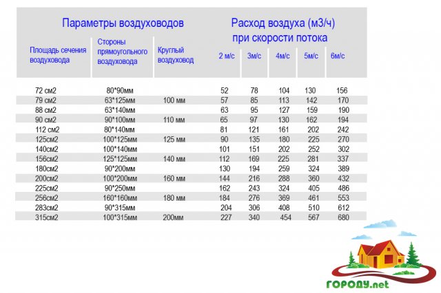 Le calcul de la surface des conduits d'air est déterminé en fonction des données sur le débit requis fourni à la pièce et du débit d'air maximal autorisé dans le conduit. Si le débit admissible est supérieur à la normale, cela entraînera perte de pression sur les locaux résistance, ainsi que sur la longueur, ce qui entraînera une augmentation des coûts énergétiques. De plus, le calcul correct de la section transversale des conduits d'air est nécessaire pour que le niveau de bruit et de vibrations aérodynamiques ne dépasse pas la norme.