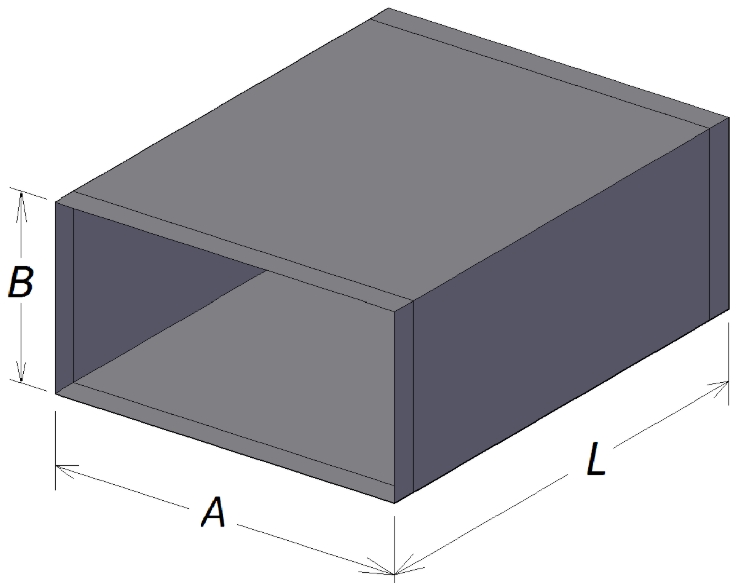 UN et B - largeur et hauteur d'un conduit rectangulaire, mm.
