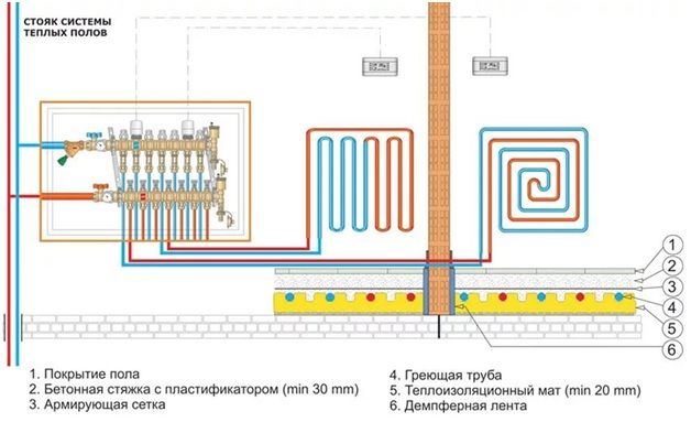 Ce sont toutes les couches principales qui doivent être posées lorsque vous fabriquez un plancher chauffé à l'eau à faire soi-même.