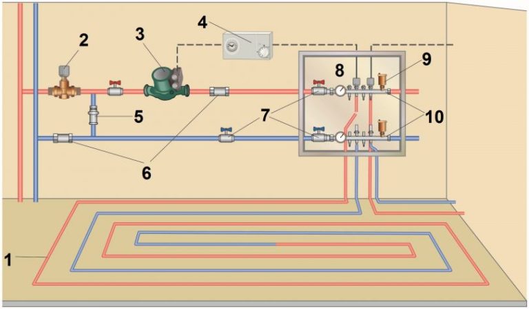 Avant de couler la chape finale, il est nécessaire d'effectuer un test de pression.Il ne doit pas y avoir d'air dans les tuyaux qui seront reliés au correcteur. Pour ce faire, l'air leur est retiré à travers les vannes de vidange