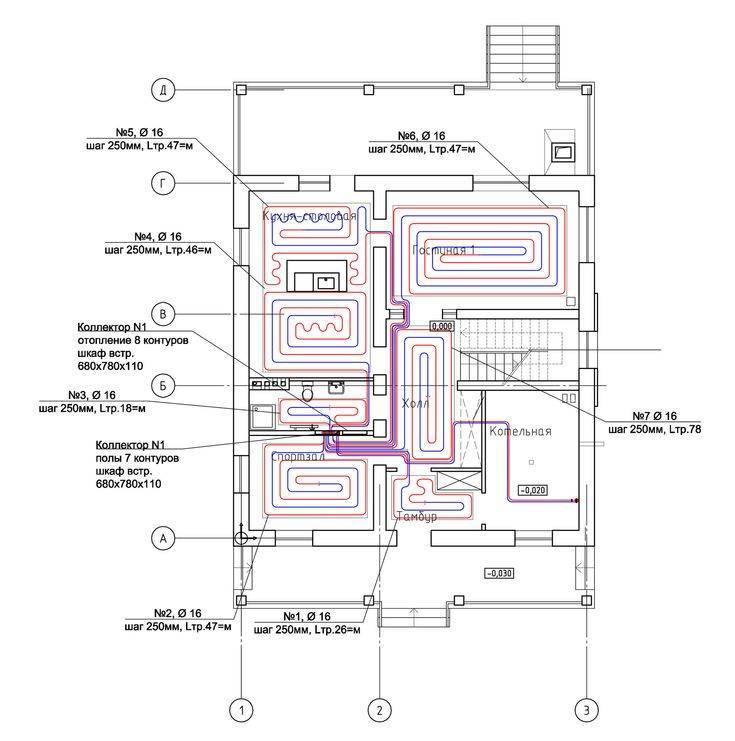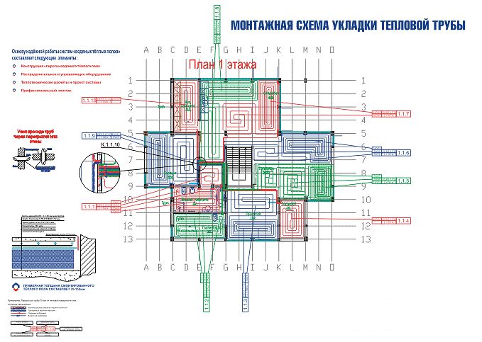 Le système est fixé à la base en béton à travers la couche inférieure d'isolation avec des chevilles. Chaque branche du pipeline, quelle que soit la disposition choisie du circuit, doit aller à l'armoire électrique.
