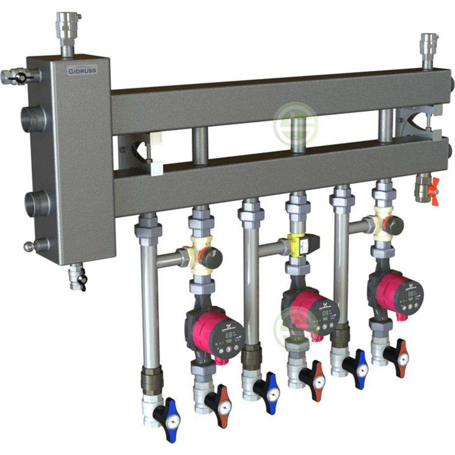 Dans le premier type, la partie d'alimentation délivre du liquide aux différentes parties du système de chauffage et est donc équipée, en plus des robinets, de pompes de circulation. De plus, il fournit divers capteurs : pour la pression, le contrôle de la température et la flèche hydraulique.