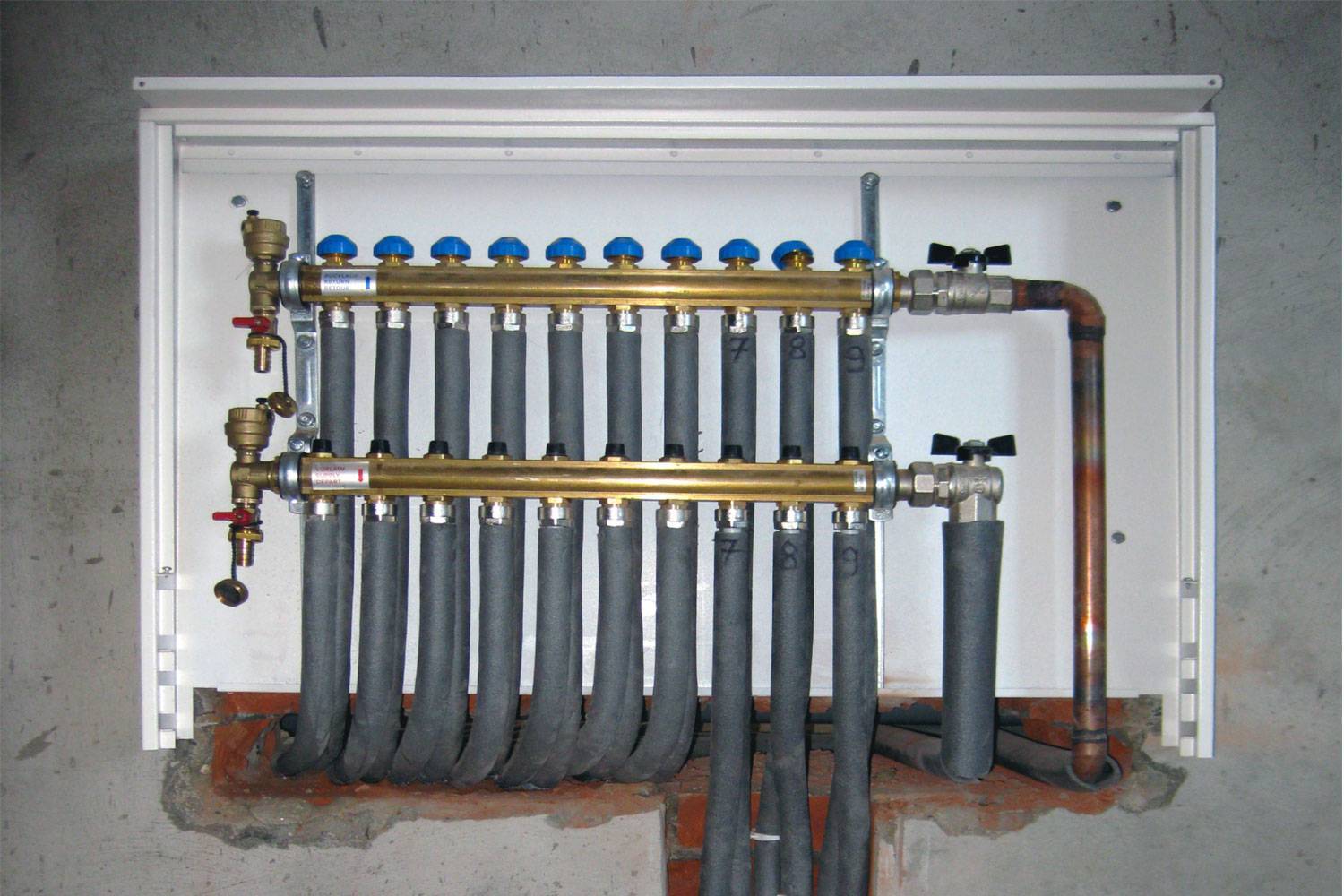 Si la maison a plusieurs étages, un ensemble collecteur pour radiateurs est installé à chaque niveau. Le site d'installation peut être un évidement technologique spécial ou un bouclier qui permet un accès libre au peigne.