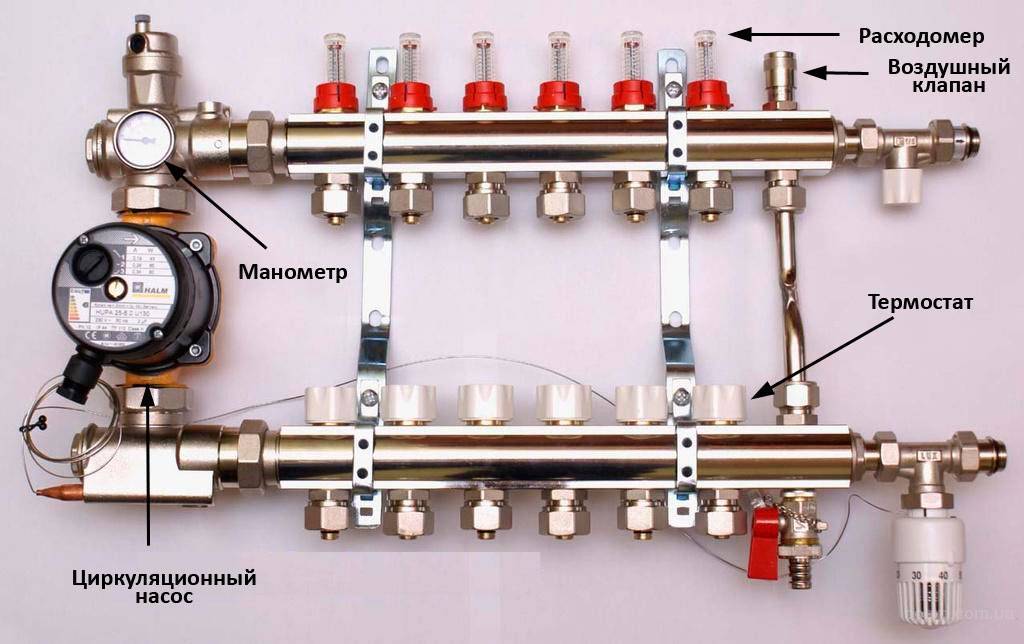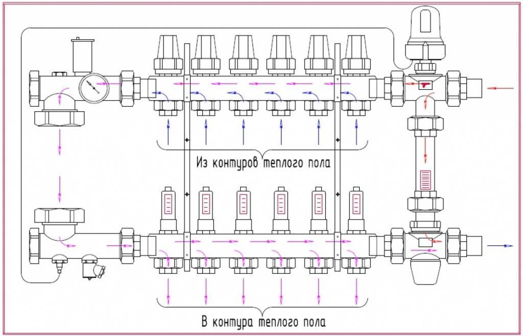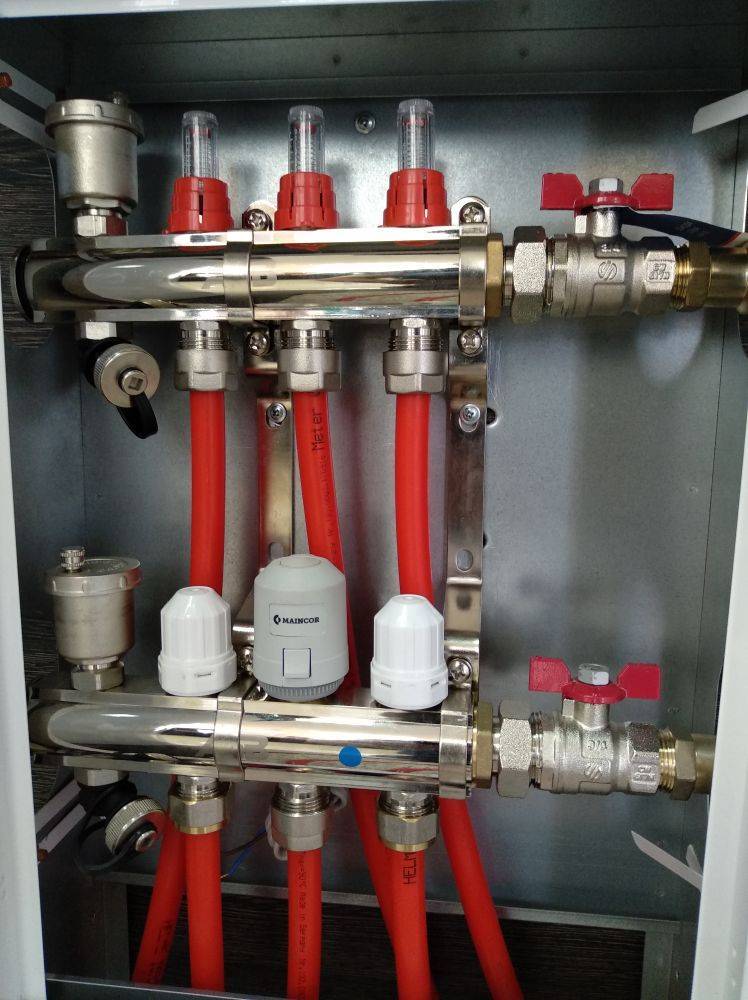 Cependant, le processus de réglage du débit et de la température du sol chaud n'est pas compliqué en soi - il suffit de tourner le débitmètre et le thermomètre sur les collecteurs d'alimentation et de retour dans la bonne direction.