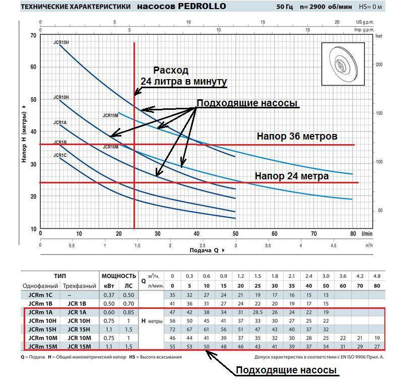 Lors du choix d'une pompe, il est conseillé de regarder le graphique réel de la caractéristique pression-débit. S'il n'est pas disponible, je recommande simplement de tracer une ligne droite sur le graphique avec les paramètres spécifiés