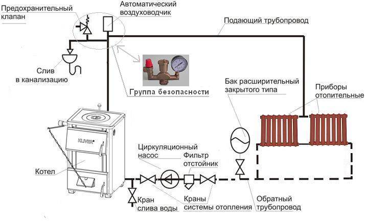 Le schéma de raccordement du RB dans le système de chauffage peut différer selon le projet, mais dans tous les cas, avec un circuit fermé, le ballon ne doit pas être installé immédiatement après la pompe de circulation.