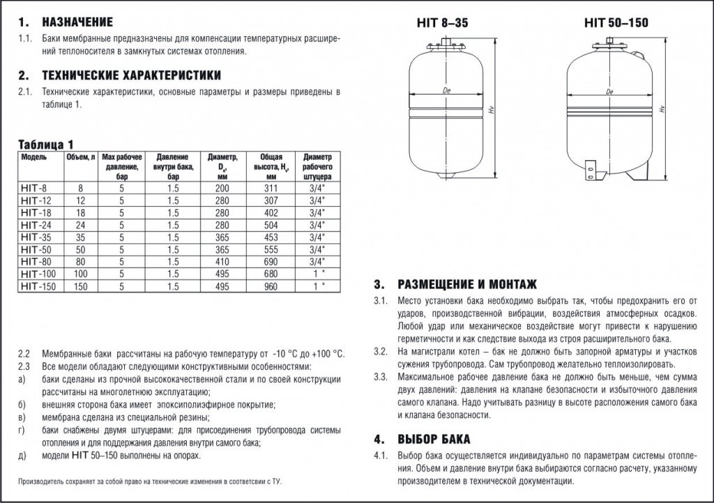 Les connexions du réservoir au système doivent être réalisées avec des matériaux hermétiques résistants à la chaleur et fonctionner à des températures positives. La pression dans la section gaz est ajustée aux valeurs définies à l'aide d'une pompe de voiture conventionnelle.
