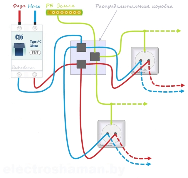 Sinon, un DDR « anti-incendie » avec un courant de déclenchement de 100 mA ou 300 mA est installé à l'entrée de l'appartement, et un DDR avec un courant de déclenchement de 10 mA ou 30 mA est installé sur les départs (où le l'installation d'un RCD est nécessaire pour la sécurité électrique).