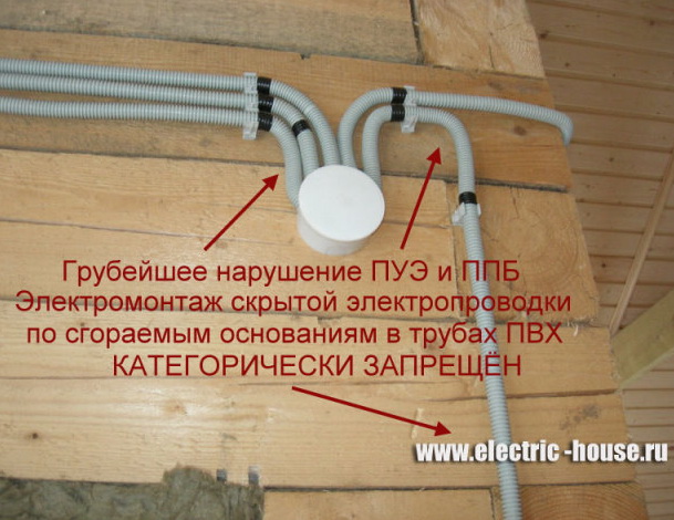 Lors de l'installation des réseaux électriques, le câblage interne et externe est distingué, dans la première version, il est placé dans la structure (stroboscopes) ou les niches des structures du bâtiment et est séparé de la surface par des matériaux ignifuges - béton, plâtre, mortier ciment-sable, albâtre , liant de gypse. L'épaisseur de la couche isolante de câblage caché à partir de matériaux de construction non combustibles est réglementée par le PSE uniquement pour les cas de produits voisins à partir de composants combustibles, selon les règles, la couche isolante ne doit pas être inférieure à 100 mm.