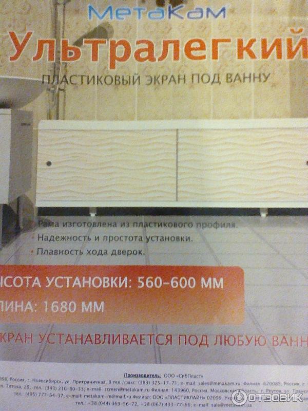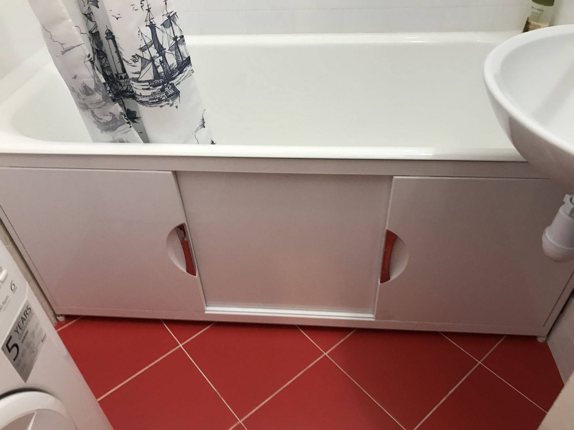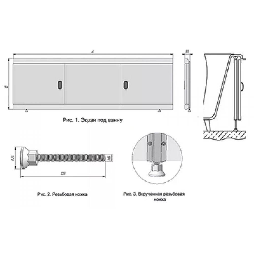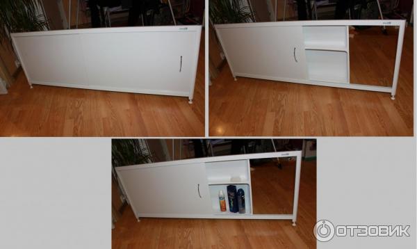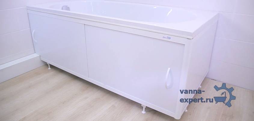 Presque tous populaires Modèles d'écrans MDF équipé de pieds supplémentaires, ce qui vous permet d'ajuster leur hauteur lorsqu'ils sont installés sous la baignoire.L'acheteur choisit lui-même la hauteur de la structure qui lui convient le mieux. Le plus souvent, elle est de 54 cm au minimum et de 62 cm au maximum. L'espace formé entre l'écran et le sol est facilement éliminé à l'aide d'un socle fin, inclus dans le kit d'équipement.