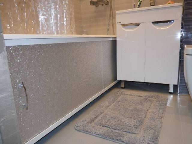 Un bain acrylique moderne est acheté avec des écrans en plastique prêts à l'emploi. Ils sont fabriqués exactement sur mesure, faciles à assembler et à installer. Les propriétaires de vieux acier et fonte sont obligés de les fabriquer de leurs propres mains ou de laisser l'espace ouvert et de contempler les tuyaux d'égout. Fermer ou non la place sous la salle de bain est une question de goût des propriétaires.