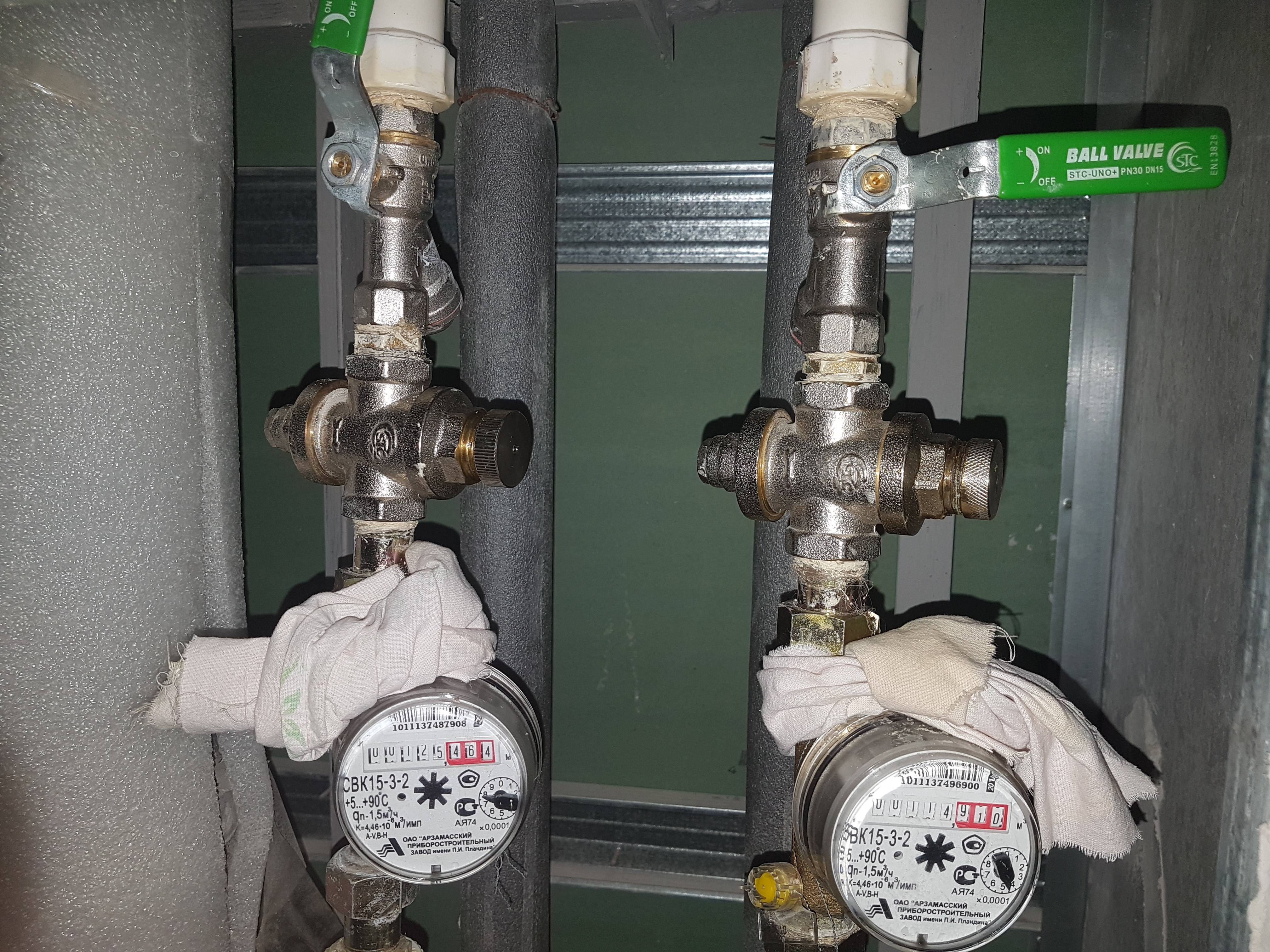 - Ensuite, un compteur d'eau est connecté et un câblage supplémentaire est disposé.