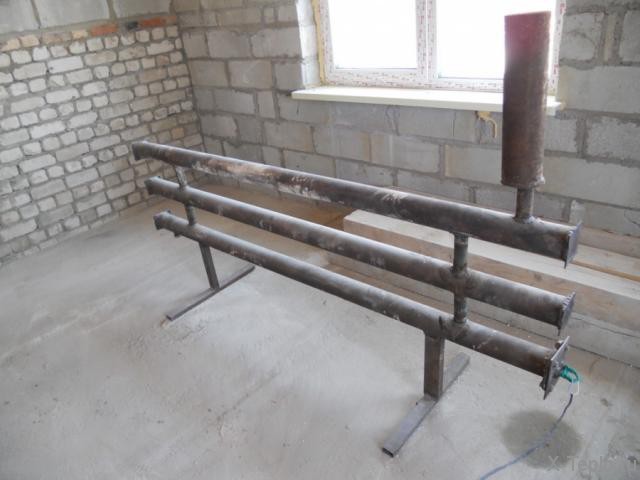 Pour une utilisation autonome du registre en tubes d'acier, des pieds de 200 à 250 mm de haut y sont soudés. Si l'appareil fait partie du circuit de chauffage, qu'il n'est pas prévu de bouger et que les murs sont suffisamment solides, un support fixe à l'aide de supports est utilisé. Parfois, pour les registres très volumineux, une option d'installation combinée est utilisée, c'est-à-dire l'appareil est placé sur des supports et en outre fixé au mur.