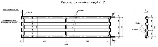 Le plus souvent, lors de la fabrication d'un registre de chauffage, deux ou trois tuyaux parallèles posés dans le sens horizontal sont connectés. La distance entre les sections adjacentes dans le registre doit nécessairement dépasser le diamètre de 50 mm.Les conceptions de bobines de registres sont également populaires, divisées en plusieurs types en fonction de la méthode de connexion des appareils au système de chauffage.
