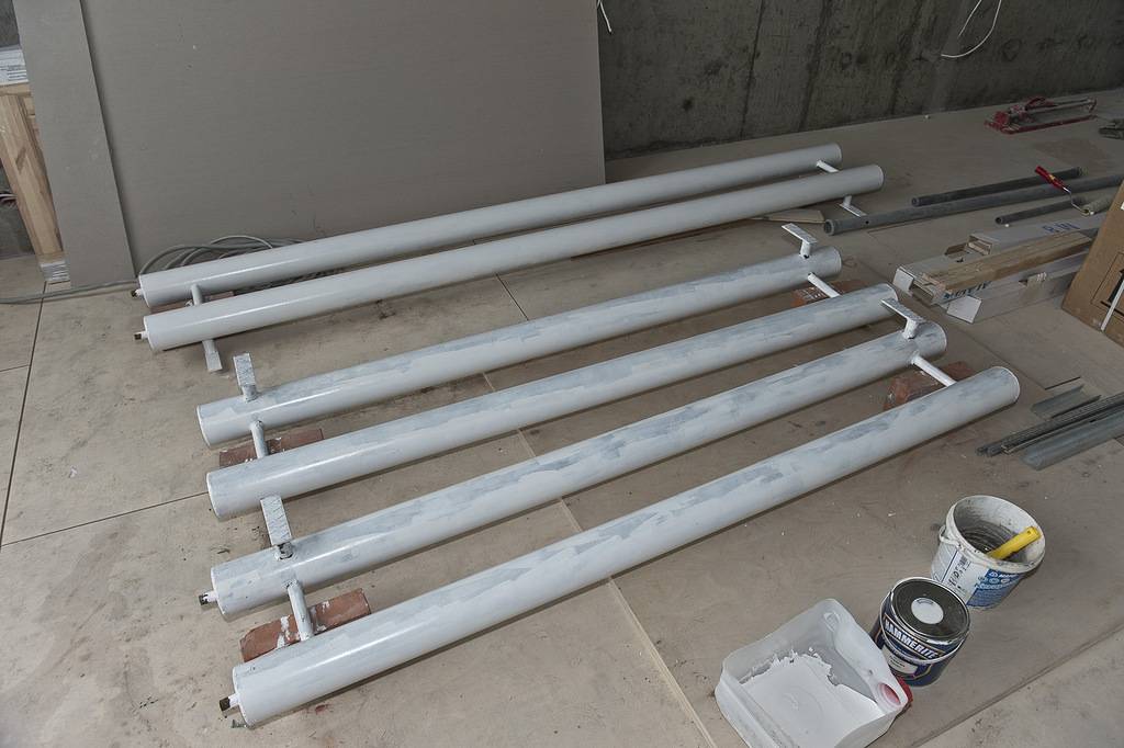 Les plus simples à mettre en œuvre sont registres de chauffage de tube profilé en acier. Ils peuvent être réalisés dans deux configurations principales : type sectionnel et serpentin (en forme de S).