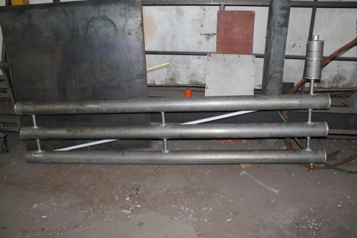 - Les bouchons, les cavaliers et les tuyaux de raccordement ou les collecteurs sont soudés conformément au dessin. Le parallélisme des sections est vérifié après la fixation de chaque élément.